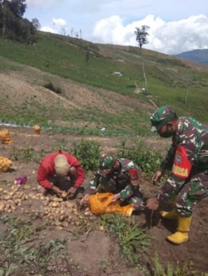 Redelong Baranewsaceh.co | Dalam rangka meningkatkan produktivitas Petani kentang di wilayah binaannya, Babinsa Desa Nosar jaya, Serda Junaidi melakakukan pendampingan program Ketahanan Pangan bagi Petani di Desa Darus kecamatan Permata Kabupaten Bener Meriah. Senin 11/1/2021