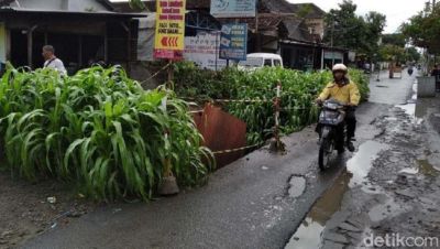 Yogyakarta - Warga Kampung Batikan, Kelurahan Tahunan, Kecamatan Umbulharjo, Kota Yogyakarta, yakni Barmadi (62) menanami Jalan Babaran Yogyakarta dengan jagung. Apa yang dilakukannya itu merupakan bentuk protes atas mangkraknya proyek rehabilitasi saluran air hujan di sana.