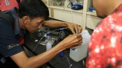 "Bahan-bahani ini kemudian dibuat menjadi ekstrak kentang gula dengan cara direbus dan diambil airnya. Setelah dingin, kemudian isolat/starter Paenibacillus polymyxa dicampur kedalam EKG tersebut dan diinkubasi selama 14 hari dengan menambahkan udara dari aerator," terangnya.