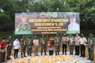 Klikwarta.com, Bintan - Komando Distrik Militer (Kodim) 0315/Bintan bersama Pemko Tanjungpinang dan Unsur FKPD Tanjungpinang menggelar panen perdana demplot (percontohan) budidaya jagung dalam rangka menjaga ketahanan pangan di Makodim 0315/Bintan Km 5 Atas Kota Tanjungpinang, Kamis (06/8/2020).