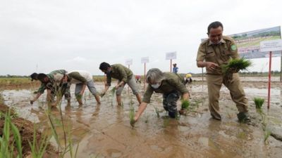 “Mudah mudahan kegiatan ini membawa barokah untuk kita semua, terutama untuk masyarakat lokal Subang, khususnya bagi para petani di daerah ini. Semoga ini berhasil untuk memenuhi kebutuhan pangan kita di Jawa Barat dan memberikan kontribusi terhadap kebutuhan nasional,” ujarnya.