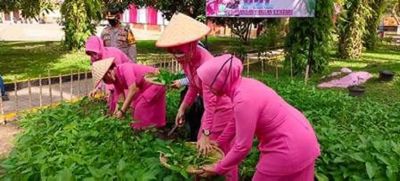 Selain menggelar rapat internal, dalam kunjungan itu, mereka juga meninjau Pekarangan Pangan Lestari (P2L) Bhayangkari Langkat. Disini, rombongan melihat dan memanen sayuran.