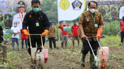 Kali ini, Menteri Pertanian Syahrul Yasin Limpo (Mentan SYL) terjun langsung bersama Bupati Blitar melakukan tanam jagung di Desa Maliran Kecamatan Ponggok Kabupaten Blitar, Kamis (13/8/2020).
