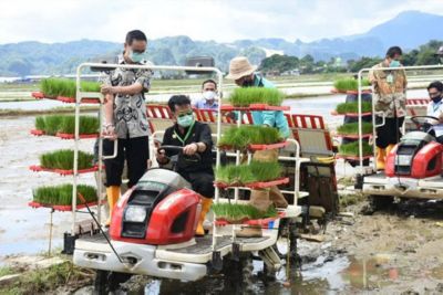 Penanaman padi yang dilakukan langsung menteri pertanian, dalam rangka program percepatan penanaman padi yang dicetuskan Kementerian Pertanian RI.