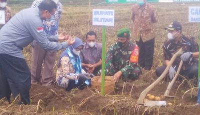 Sejak bermitra dengan Indofood, income para petani kentang Atlantik itu cukup lumayan. Kegembiraan mereka pun bertambah manakala Bupati Rini berkenan datang untuk melihat dan turut bersama petani melakukan panen besar itu.