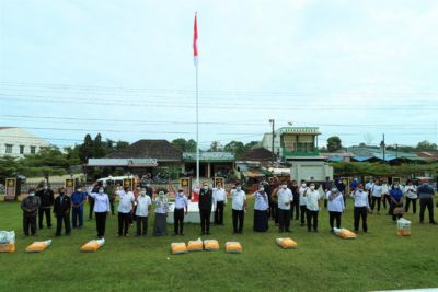 SIDIKALANG - Bupati Dairi, Dr. Eddy Keleng Ate Berutu serahkan 14.385 Kg benih jagung Varietas Pioneer 32 kepada 191 kelompok tani yang ada di 14 Kecamatan Kabupaten Dairi, Rabu (23/12/2020) di halaman kantor Bupati Dairi.