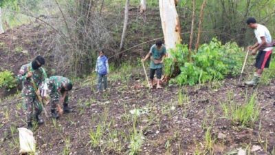 "Melihat kesempatan yang bagus untuk bercocok tanam, Wadanpos Lookeu Serda Fahrial Maamulu bersama 3 orang anggota yaitu Pratu Septian Adi Permana, Pratu Risman Hidayat dan Pratu Caesar Lodji langsung ikut turun ke kebun untuk membantu Bapak Marcelius Moruk yang sedang menanam jagung", kata Dansatgas.