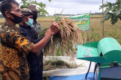 Cilacap, Gatra.com – Petani di Kabupaten Cilacap, Jawa Tengah, memanen padi varietas Inpari Unsoed 79 Agritan di lahan percontohan (pilot project) Desa Bulupayung, Kecamatan Patimuan, Cilacap. Varietas ini adalah jenis tahan air asin, yang dinilai mampu mengatasi persoalan area persawahan di kawasan pasang rob air laut.