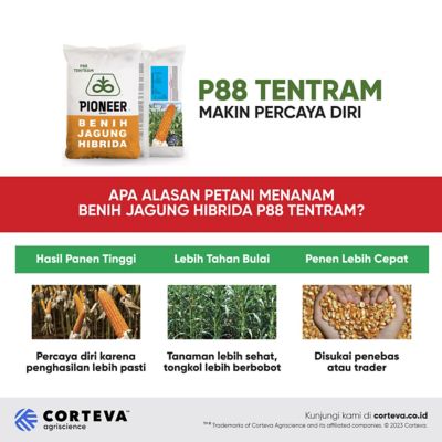 Benih jagung Pioneer® P88 Tentram telah melalui tahapan uji coba di berbagai lahan jagung di Indonesia dan telah terbukti lebih tahan terhadap tekanan penyakit bulai yang sangat berpengaruh terhadap hasil panen yang didapatkan petani di setiap musim. Peluncuran ini adalah hasil inovasi pertanian secara terus menerus dari Corteva Agriscience dan Pioneer® yang sudah dikenal selama lebih dari 35 tahun oleh petani di Indonesia. Dengan inovasi ini, petani akan memiliki lebih banyak pilihan yang sesuai dengan kebutuhan mereka.