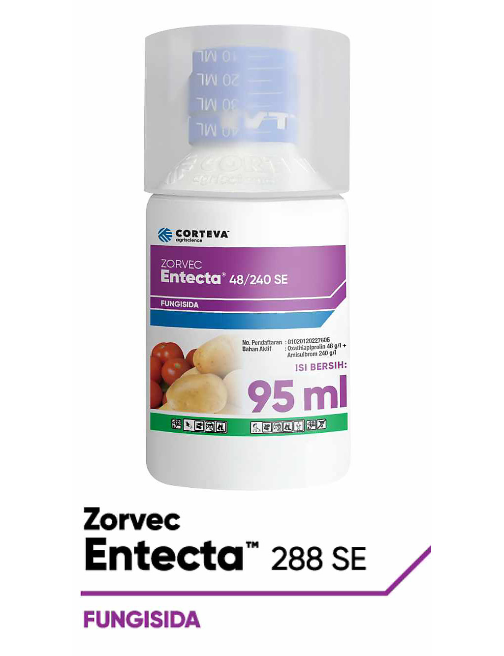Zorvec Entecta punya kombinasi bahan aktif yang bekerja sejak awal untuk melindungi tanaman kentang dari serangan busuk daun. Bahkan saat cuaca tidak bersahabat sekalipun, Zorvec tetap bekerja optimal. Hasilnya? Tanaman tumbuh sehat, panen melimpah, dan kentang berkualitas tinggi