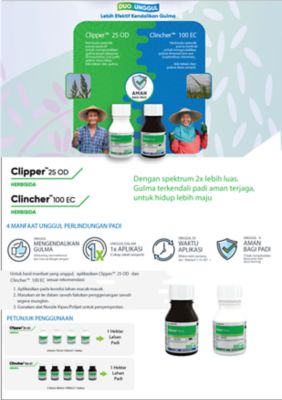 Untuk Anda petani padi pastinya sangat meresahkan jika lahan yang sudah di tanami padi terkena gulma. Gulma pada padi harus dikendalikan, agar petumbuhan padi tetap maksimal Dan sekarang, saatnya lindungi padi dari Gulma dengan menggunakan Duo Unggul Clipper 25 OD dan Clincher 100 EC 𝐃𝐞𝐧𝐠𝐚𝐧 𝐬𝐩𝐞𝐤𝐭𝐫𝐮𝐦 𝟐𝐱 𝐥𝐞𝐛𝐢𝐡 𝐥𝐮𝐚𝐬 𝐆𝐮𝐥𝐦𝐚 𝐭𝐞𝐫𝐤𝐞𝐧𝐝𝐚𝐥𝐢, 𝐩𝐚𝐝𝐢 𝐚𝐦𝐚𝐧 𝐭𝐞𝐫𝐣𝐚𝐠𝐚 𝐮𝐧𝐭𝐮𝐤 𝐡𝐢𝐝𝐮𝐩 𝐥𝐞𝐛𝐢𝐡 𝐦𝐚𝐣𝐮